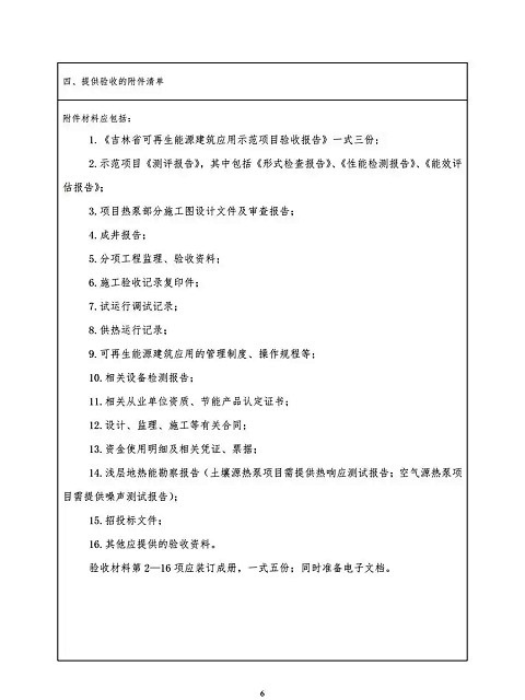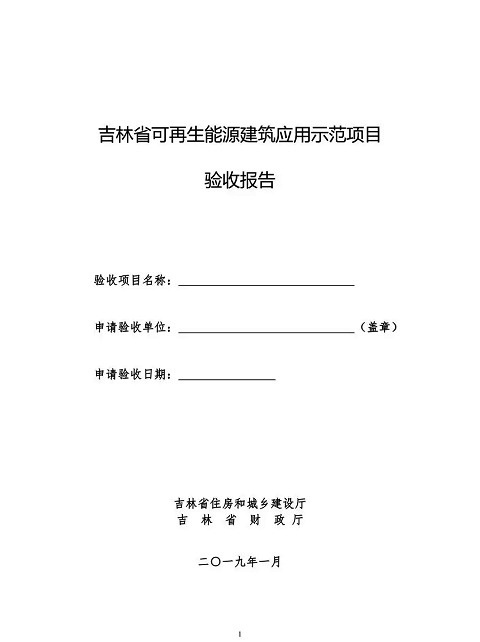 1.《吉林省可再生能源建筑應(yīng)用示范項(xiàng)目驗(yàn)收?qǐng)?bào)告》一式三份;