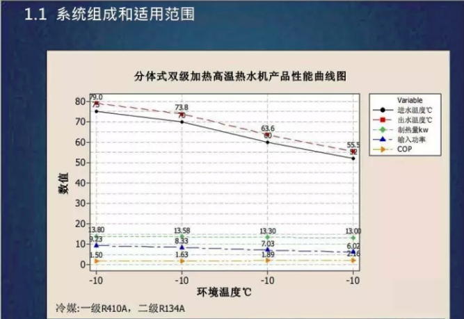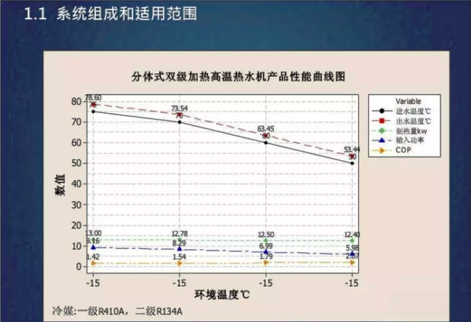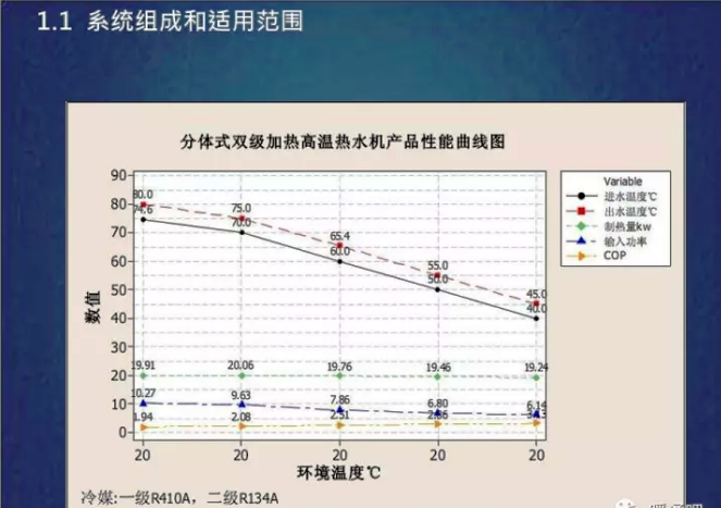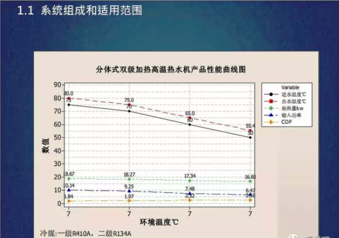 -空氣源熱泵冬季在室外較低溫度的供暖設(shè)計工況下,冷凝溫度和供水溫度有一定限制,因此,設(shè)計水溫不能過高。