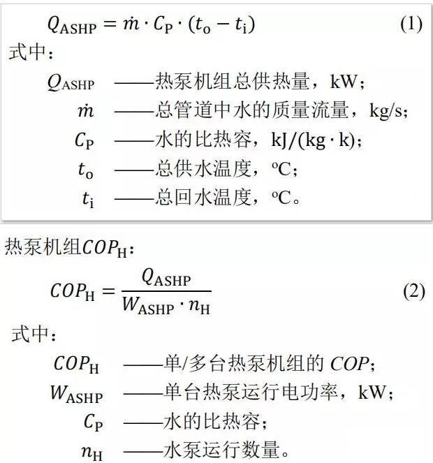 1)單/多臺熱泵機(jī)組性能評價指標(biāo)熱泵機(jī)組總供熱量QASHP: