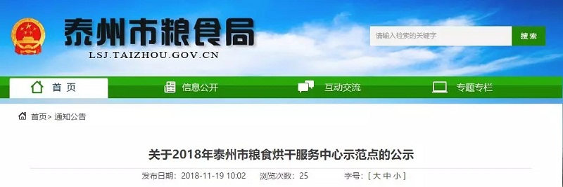 2018年11月19日,泰州市糧食局對《2018年泰州市糧食烘干服務(wù)中心示范點(diǎn)》進(jìn)行了公示,公示期為2018年11月19日-11月25日,結(jié)果如下: