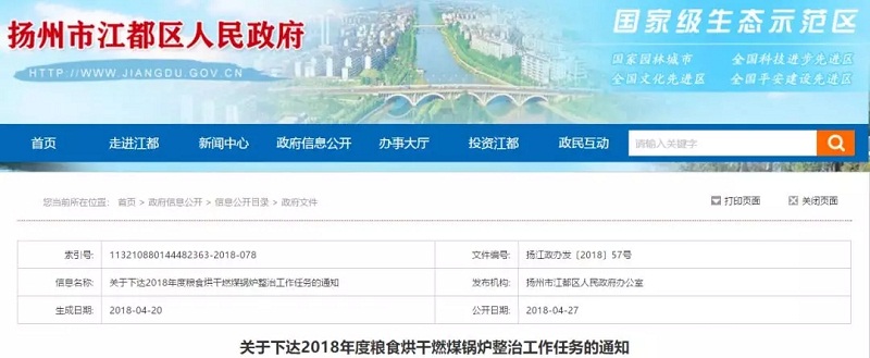 2018年4月20日,揚(yáng)州市江都區(qū)人民政府辦公室下達(dá)了《關(guān)于2018年度糧食烘干燃煤鍋爐整治工作任務(wù)的通知》,指出為全面整治高污染燃料糧食烘干爐,年底前完成全區(qū)糧食烘干燃煤鍋爐淘汰或?qū)嵤┣鍧嵞茉刺鎿Q(初步調(diào)查的77家134臺(tái)名單如下圖)。除《糧食烘干燃煤鍋爐整治項(xiàng)目表》中所列出的鍋爐,所有遺漏的或統(tǒng)計(jì)后新增的烘干燃煤鍋爐,必須納入各鎮(zhèn)整治范圍。對今后新建的糧食烘干爐,必須使用清潔能源。