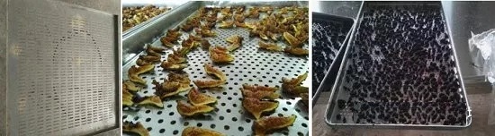 沖孔盤使用的范圍也挺廣的,主要特點(diǎn)物料產(chǎn)生粘連后清洗方便,大多運(yùn)用于平流式風(fēng)道,沖孔大小也是根據(jù)物料自身特點(diǎn)來制作的,選用材料一般為不銹鋼板、鍍鋅板,主要用于無花果果干、桑葚果干等容易蒸發(fā)出糖分產(chǎn)生粘連的物料。