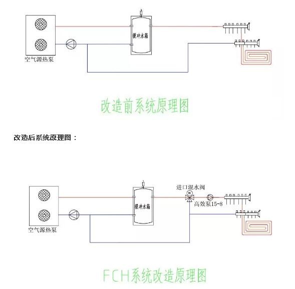 改造前空氣源熱泵系統(tǒng)原理圖: