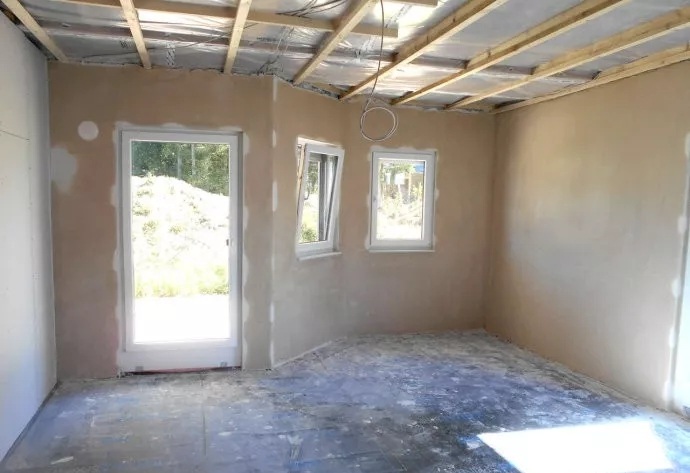 室內(nèi)石膏板墻面,機(jī)械噴涂專(zhuān)用涂料,裝飾施工現(xiàn)場(chǎng)