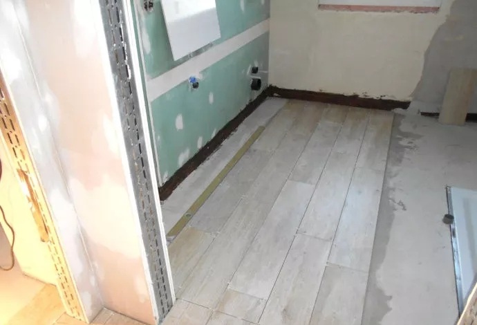 室內(nèi)“地暖地面”的表層,已經(jīng)開(kāi)始鋪貼瓷磚地面