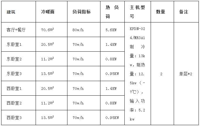 客戶(hù)為小區(qū)別墅,一共兩層半,其中第三層主要用于儲(chǔ)物及隔熱,不做采暖,廚房衛(wèi)生間不做采暖,主要居住1層和2層,三世同堂,有老人和孩子,屬于抵抗力相對(duì)較弱群體,建議采暖用地暖,制冷用風(fēng)盤(pán),制冷控制在26℃左右,采暖控制在18℃左右。