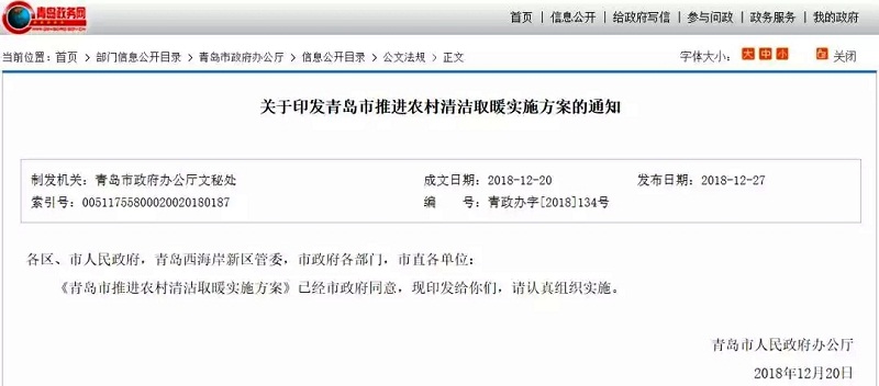 關(guān)于印發(fā)青島市推進(jìn)農(nóng)村清潔取暖實(shí)施方案的通知