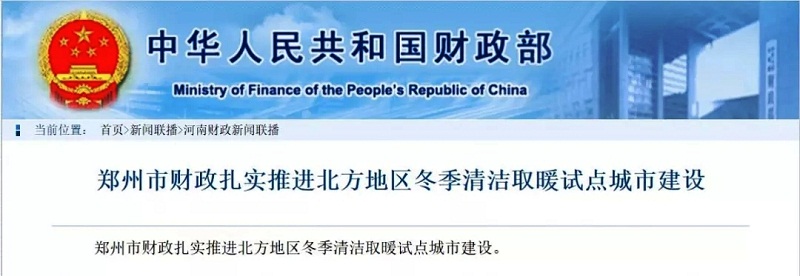 鄭州市財政扎實推進北方地區(qū)冬季清潔取暖試點城市建設(shè)